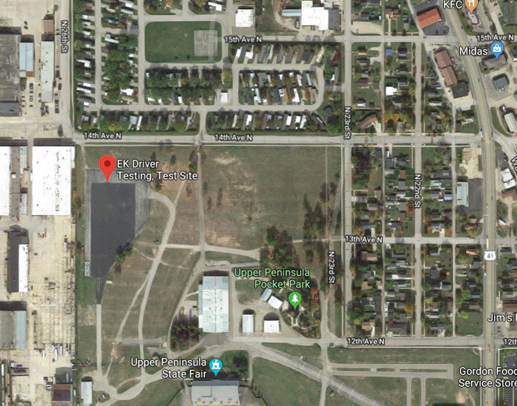The paved parking lot behind the Upper Peninsula State Fair Grounds off 14th Avenue North.